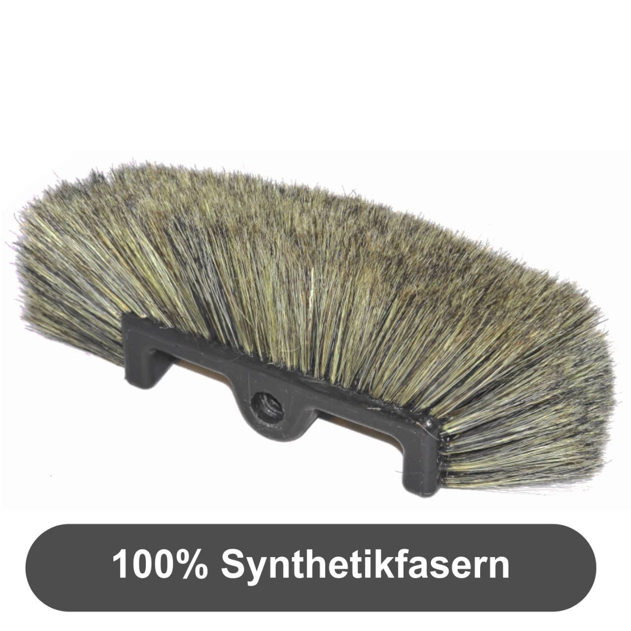 Winkelbürste mit synthetischen Borsten und zusätzlichem Kantenbesatz zur Kontaktvermeidung zwischen Fahrzeug und Bürstenkörper.