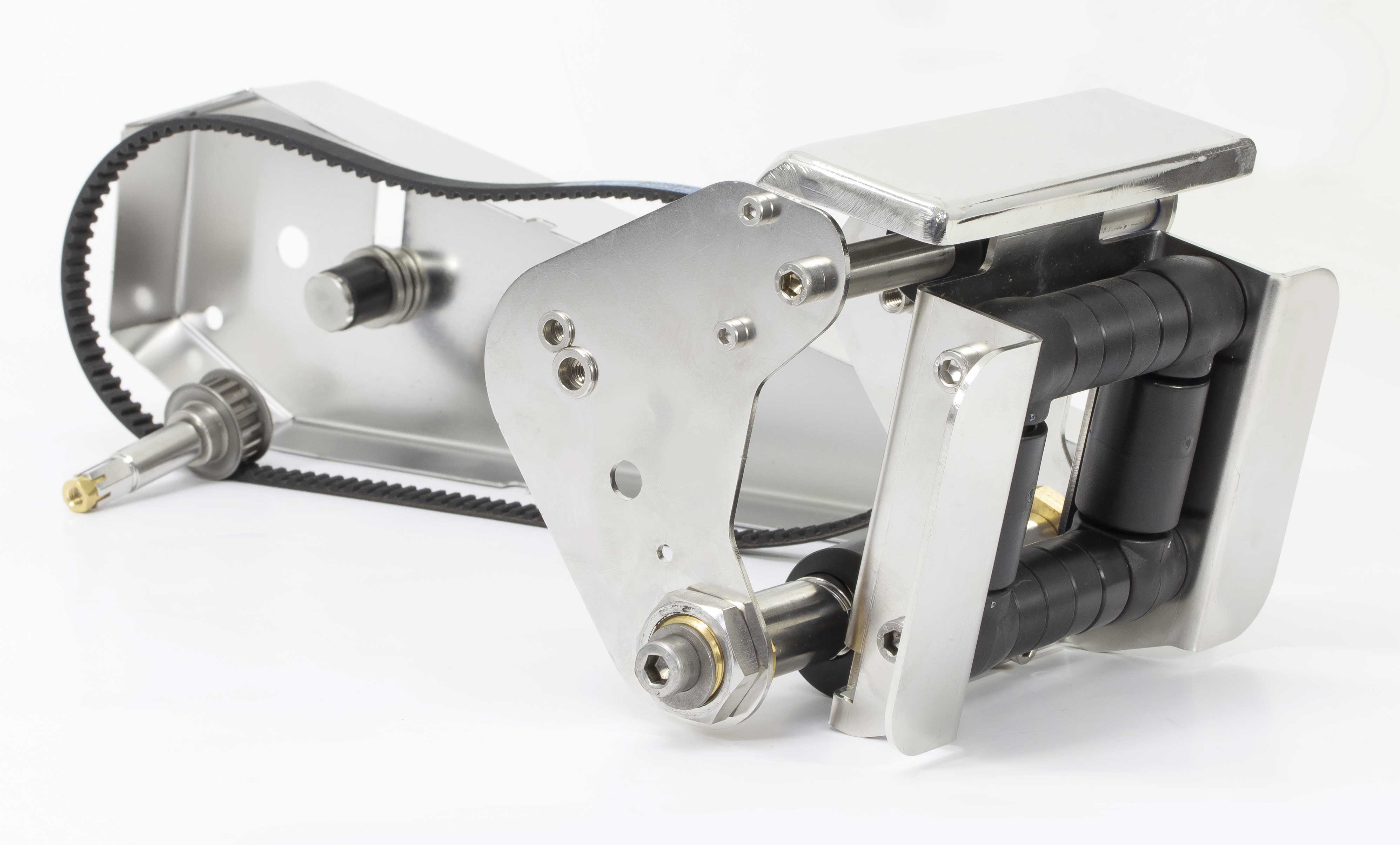 Ausgestattet mit Rollen, horizontal und vertikal, die an den jeweiligen Schlauch angepasst werden können.
